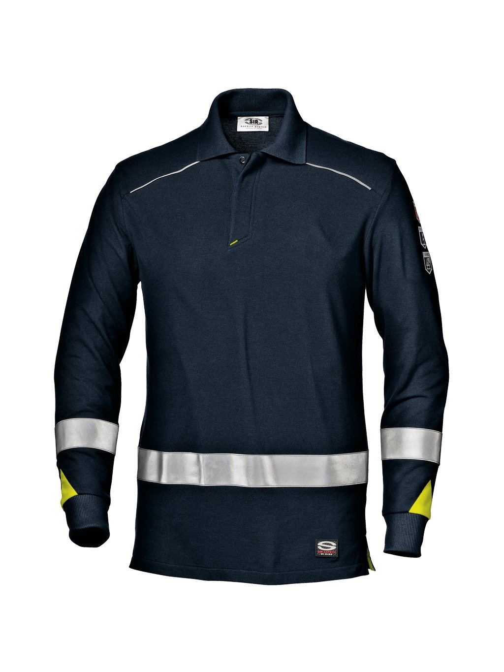 Multinormové polo tričko s dlhými rukávmi má golier so skrytým zapínaním na gombíky, manžety a golier z rebrovanej pleteniny, bočné rozparky, vložky z vysoko viditeľnej tkaniny na spodnej časti rukávov. Reflexné lemovanie na hrudi a reflexný pás na rukávoch a hrudi.