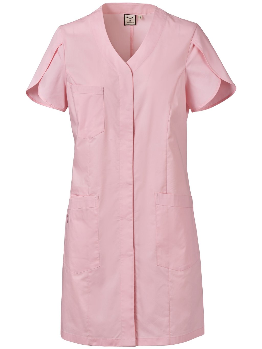 Dámska dlhšia tunika s krátkymi rukávmi v tvare tulipánu, s výstrihom v tvare V, zo zmesovej tkaniny bavlneného popelínu, polyesteru a vlákna Lycra® T400®, s vynikajúcimi vlastnosťami, čo sa týka pružnosti a priedušnosti. Zakrytá gombíková lišta v strede. Tri veľké našité vrecká: jedno na hrudi, dve nižšie, jedno z nich s vyšitou ikonou vrtule Payper rovnakej farby a vnútorným vreckom na smartfón. Zadný diel prestrihnutý v strede a na bokoch. Rozparok na spodku s cieľom uľahčiť pohyby.
