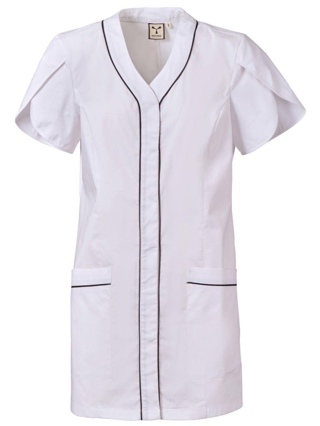 Dámska tunika s krátkymi tulipánovými rukávmi s výstrihom v tvare V, zo zmesovej tkaniny bavlneného popelínu, polyesteru a vlákna Lycra® T400®, v kombinácii s pohodlnou sieťovinou na bokoch zaručuje maximálnu priedušnosť a voľnosť pohybu. Zakrytá gombíková lišta v strede. Dve veľké našité vrecká, pričom na jednom je vyšitá ikona vrtule Payper v rovnakej farbe. Okrajové lemy a vrecká kontrastnej farby. Zadný diel prestrihnutý v strede.