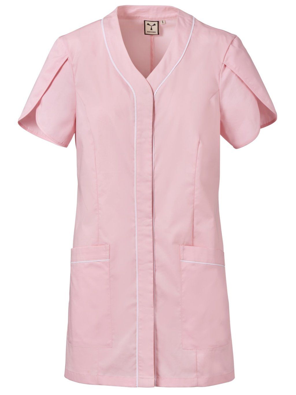 Dámska tunika s krátkymi tulipánovými rukávmi s výstrihom v tvare V, zo zmesovej tkaniny bavlneného popelínu, polyesteru a vlákna Lycra® T400®, v kombinácii s pohodlnou sieťovinou na bokoch zaručuje maximálnu priedušnosť a voľnosť pohybu. Zakrytá gombíková lišta v strede. Dve veľké našité vrecká, pričom na jednom je vyšitá ikona vrtule Payper v rovnakej farbe. Okrajové lemy a vrecká kontrastnej farby. Zadný diel prestrihnutý v strede.