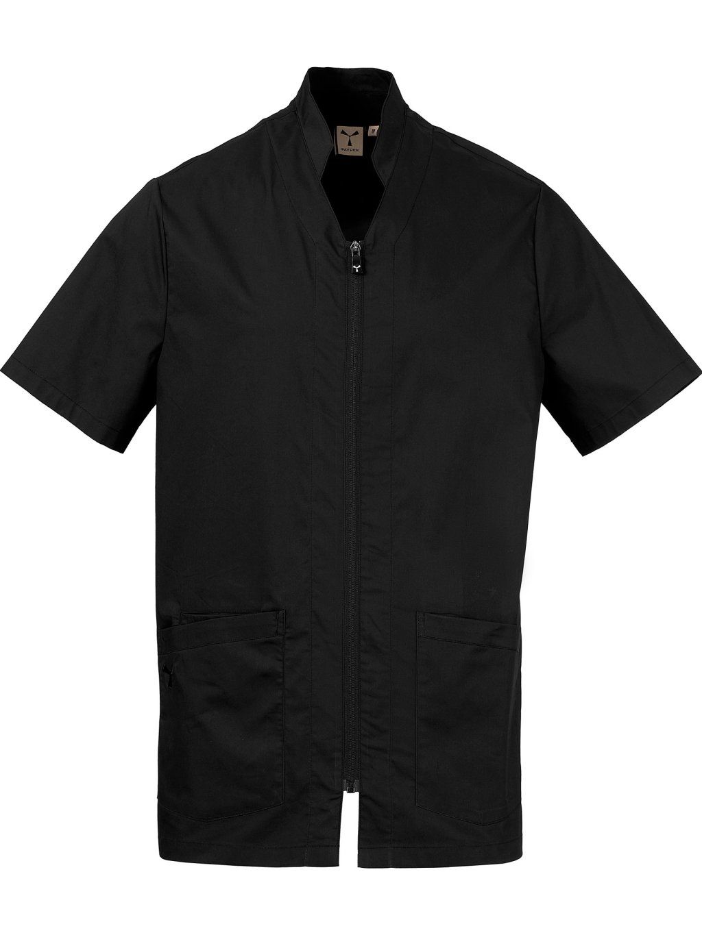 Pánska tunika s krátkymi rukávmi so stojačikom naznačením výstrihu V, zo zmesovej tkaniny bavlneného popelínu, polyesteru a vlákna Lycra® T400®, v kombinácii s pohodlnou sieťovinou na bokoch zaručuje maximálnu priedušnosť a voľnosť pohybu. Zapínanie v strede na zips a prispôsobeným jazdcom. Dve veľké našité vrecká, pričom na jednom je vyšitá ikona vrtule Payper v rovnakej farbe, a vnútorné vrecko na smartfón. Zadný diel prestrihnutý v strede.