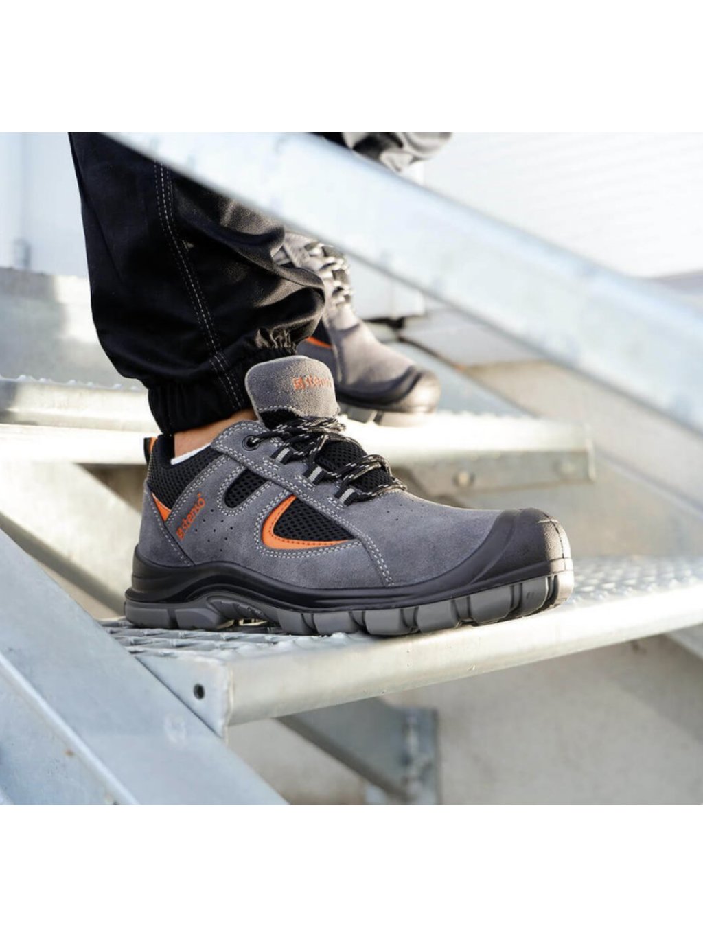 Praktická pracovná obuv, ktorá kombinuje funkčnosť a pohodlie, ideálna pre profesie vyžadujúce spoľahlivosť a ochranu počas celého dňa. Zaisťuje vynikajúce vetranie a stabilitu vďaka vysoko kvalitným materiálom, ktoré zaručujú priedušnosť, odolnosť a bezpečnosť. Táto obuv je praktická a odolná, vhodná do vnútorného aj vonkajšieho pracovného prostredia.