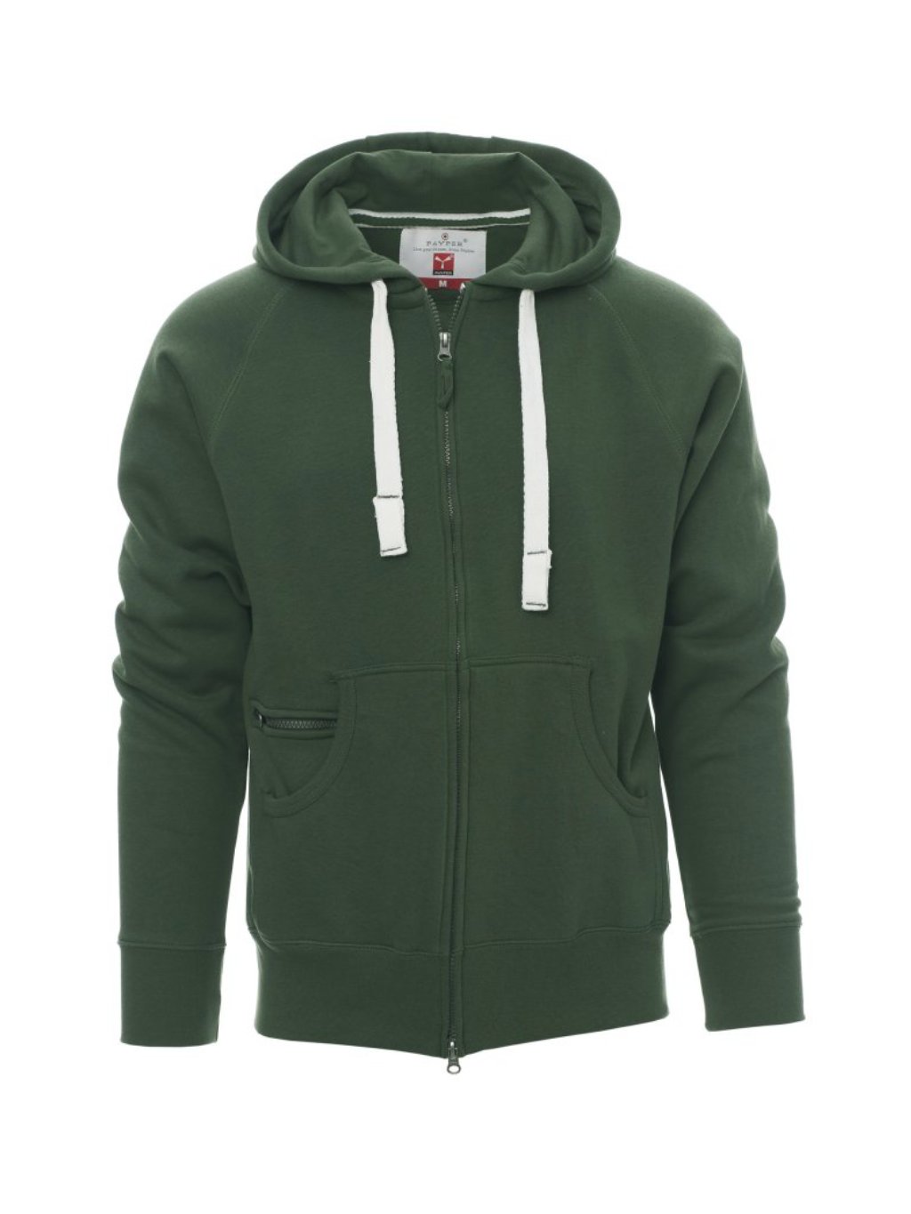 Pánska mikina s kapucňou s plným poplastovaným zipsom s dvojitým kovovým uškom, 300g.