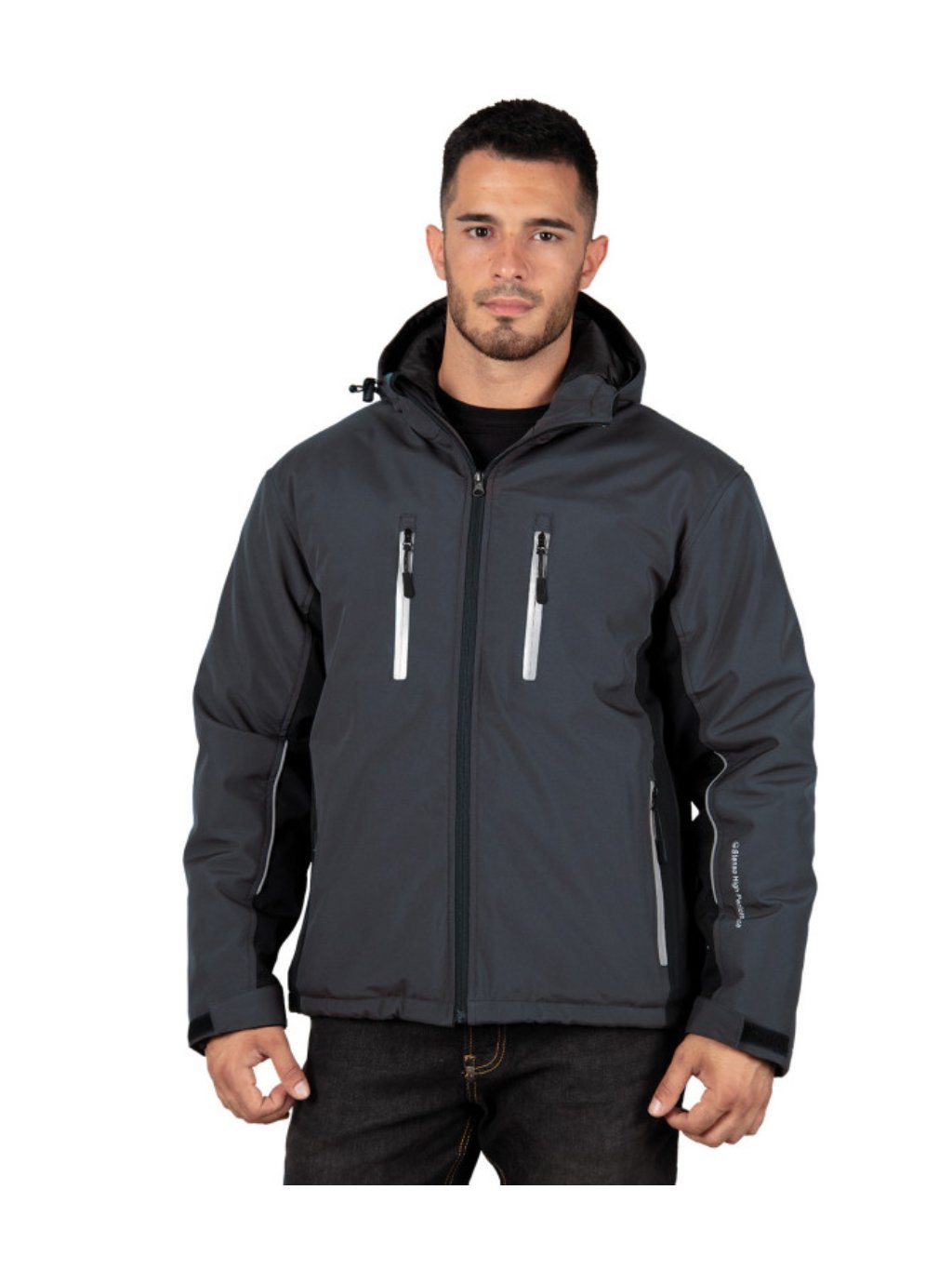 Zimná moderná softshellová pracovná bunda športového vzhľadu a pohodlného strihu, vode a vetru odolná bunda ideálna na chladné mesiace.