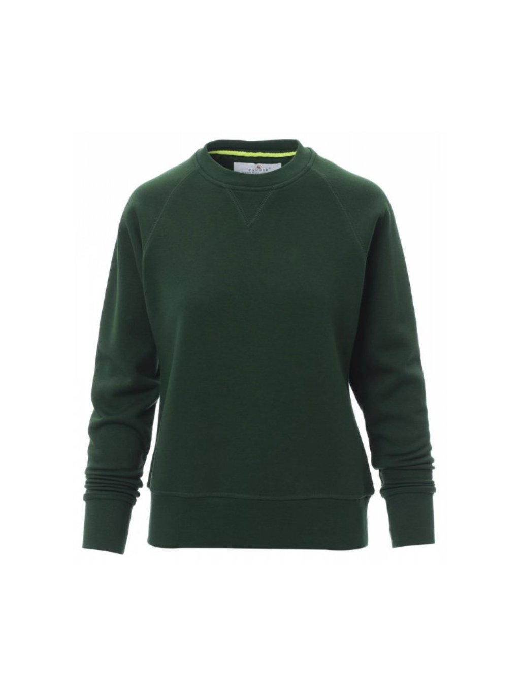 Dámska mikina ku krku, raglánové rukávy, šitie okolo krku v tvare V. Strečové rebrované manžety a lem, zosilnené švy.
