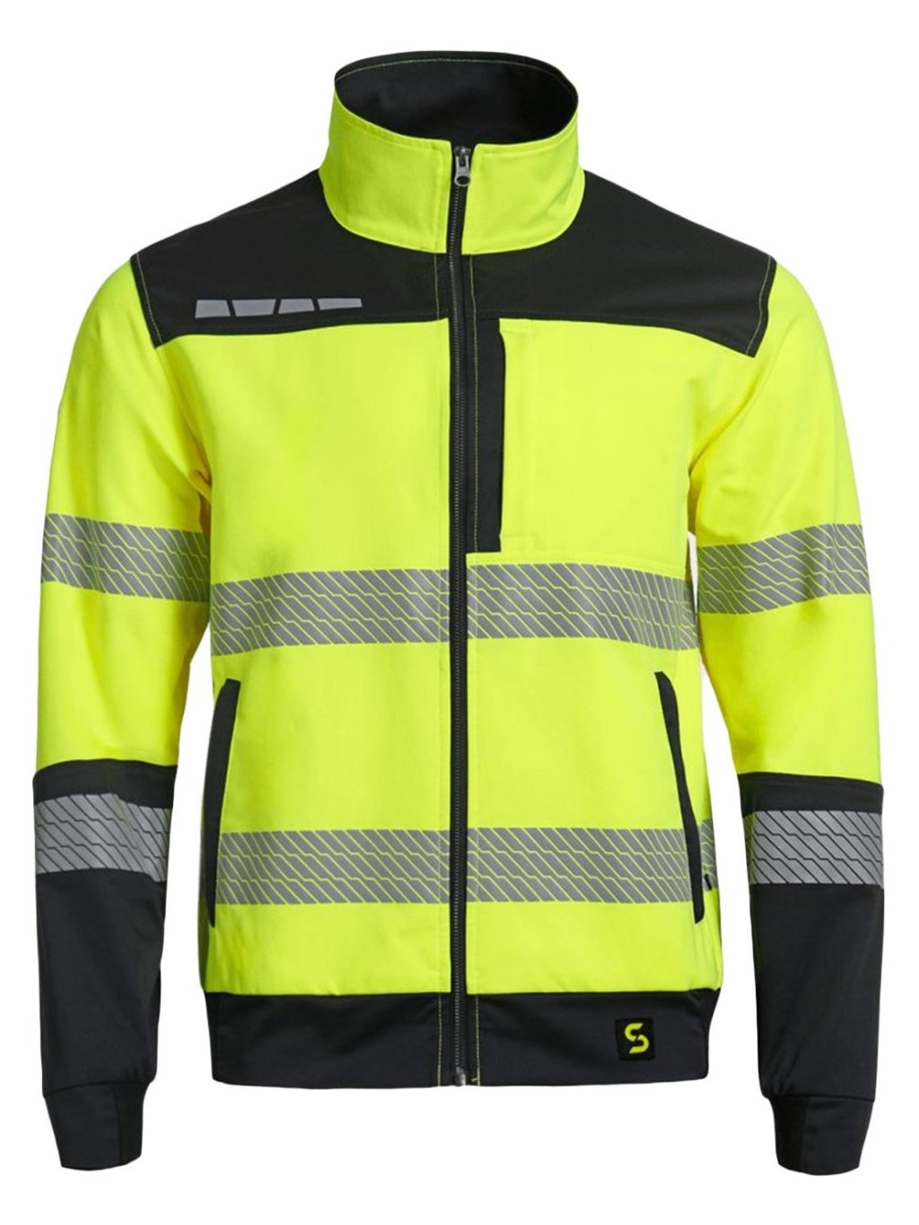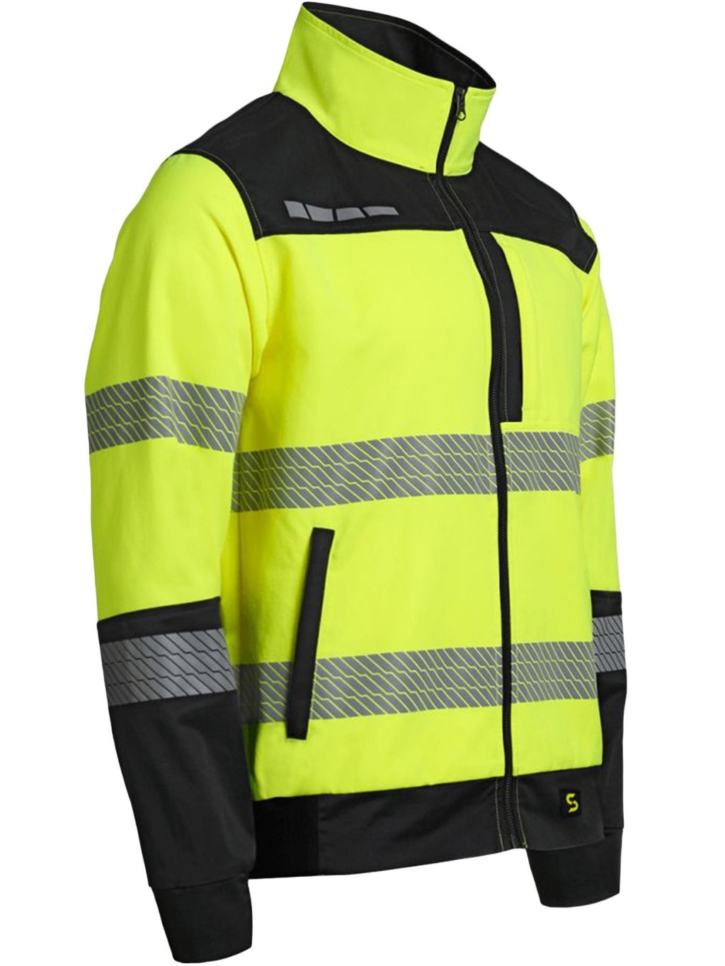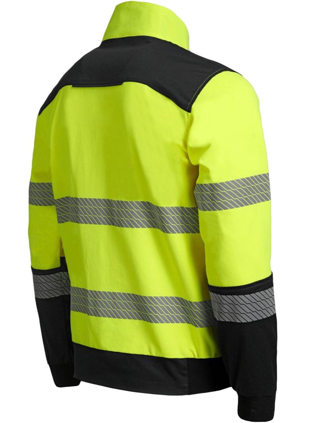 Vysoko viditeľná pracovná bunda kombinujúca pohodlie, funkčnosť a zvýšenú viditeľnosť vďaka elastickému materiálu a reflexným pruhom.