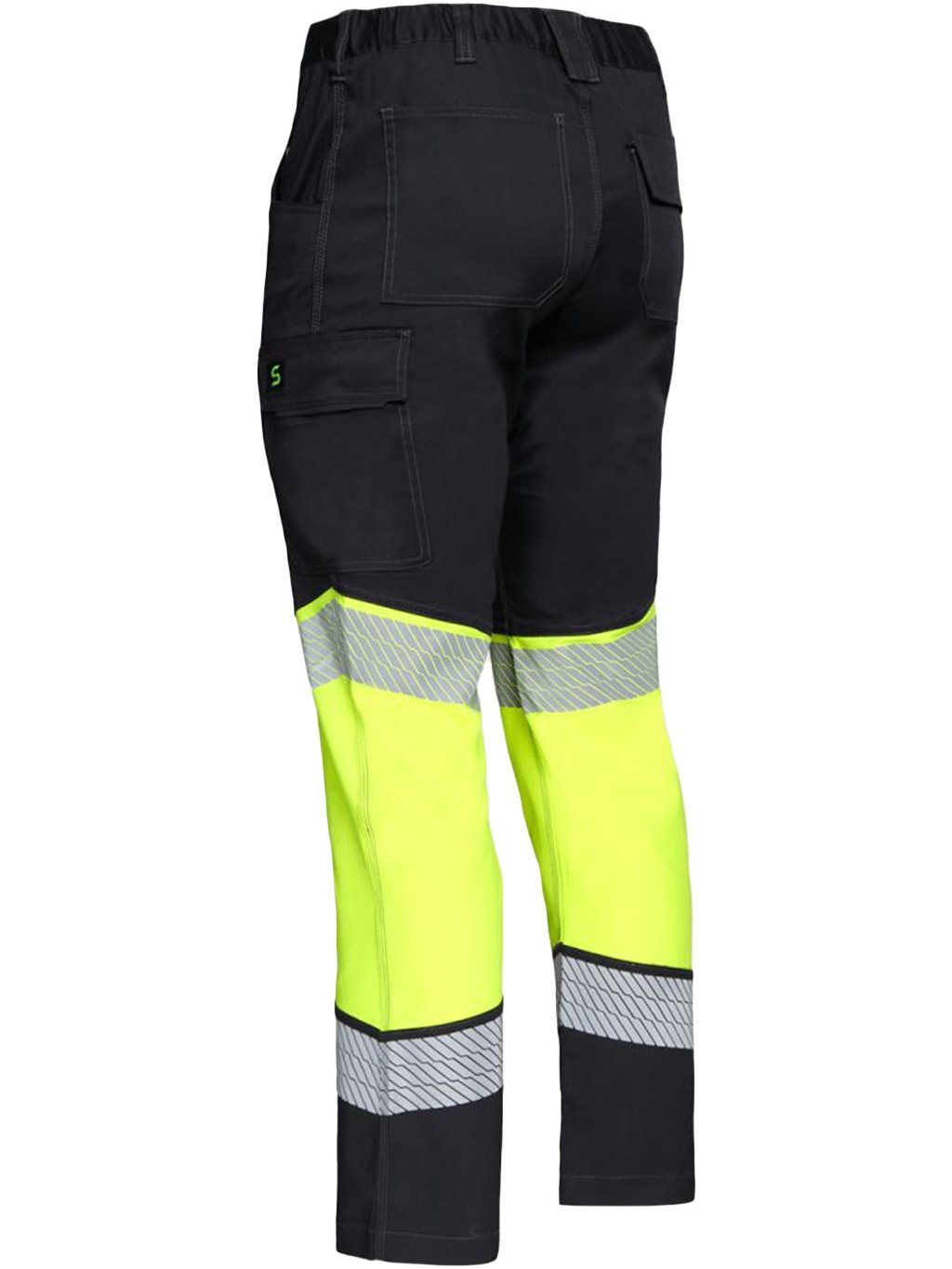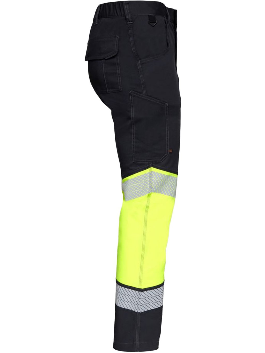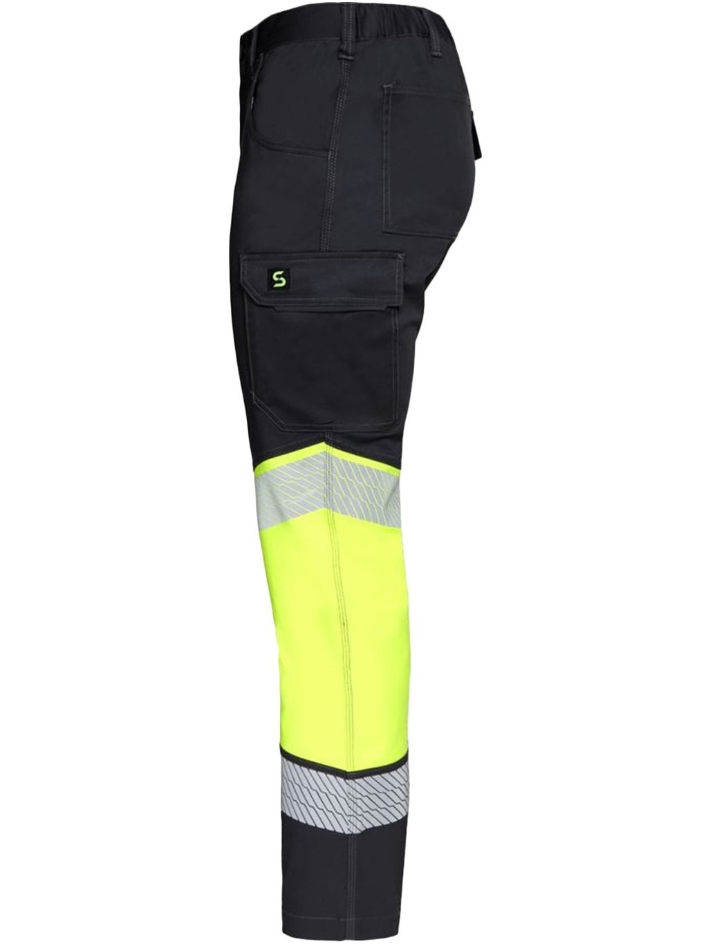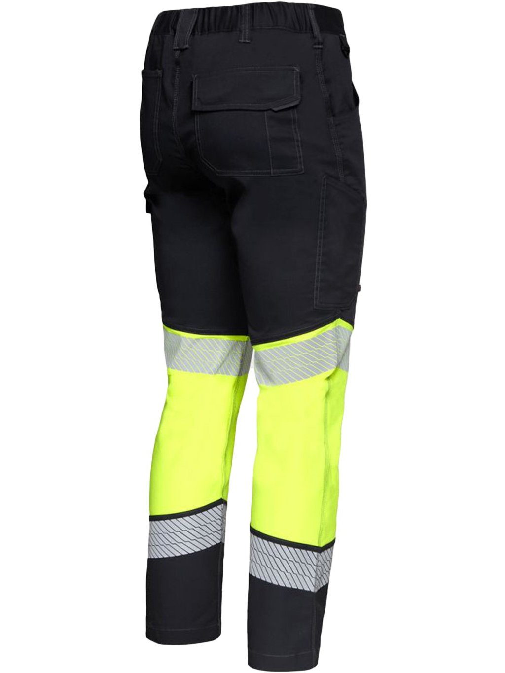 Vysoko viditeľné pracovné nohavice vyrobené z ľahkej strečovej tkaniny pre pohodlie a viditeľnosť.