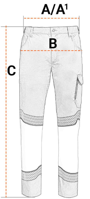 • Dve predné a dve zadné vrecká, vrecko na stehnách s klopou a vrecko na náradie.