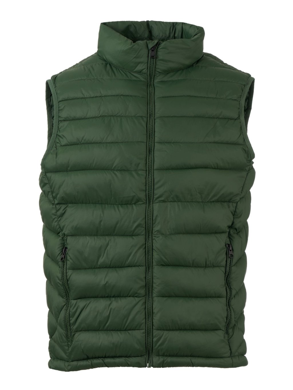 Pánska vesta s výplňou z voľných vláken (130g/m2), zapínanie na plastový zips s kovovým bežcom s logom v tvare vrtule. Dve bočné vrecká s našitým zipsom. Tenké lemovanie v tóne. Nastaviteľný spodný okraj so sťahovacou šnúrkou. Oblečenie je možné uložiť do pravej bočnej vrecka.