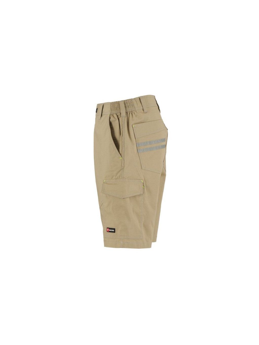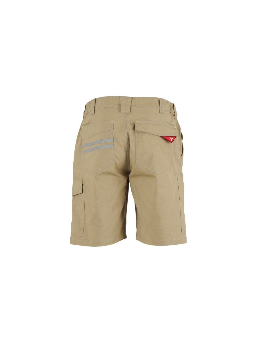 Pánske bermudy z bavlneného mini ripstop materiálu, bočné gumičky a opaské slučky v páse, zapínanie na zips a plastový gombík. Dva predné vrecká klasického strihu, jedno bočné vrecko Lock System, držiak na meter, dve zadné vrecká jedno otvorené s retroreflexnými pásikmi a jedno s chlopňou na suchý zips. Kontrastné vložky a švy, trojitý šev na vnútornej strane nohavice.