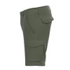 Pánske bermudy, zapínanie na zips a posunuté zapínanie na 2 gombíky, 2 francúzske vrecká, 2 našité bočné vrecká s chlopňou a patentným gombíkom, pútka na mieru v páse, 2 zadné vrecká s chlopňou a patentným gombíkom.