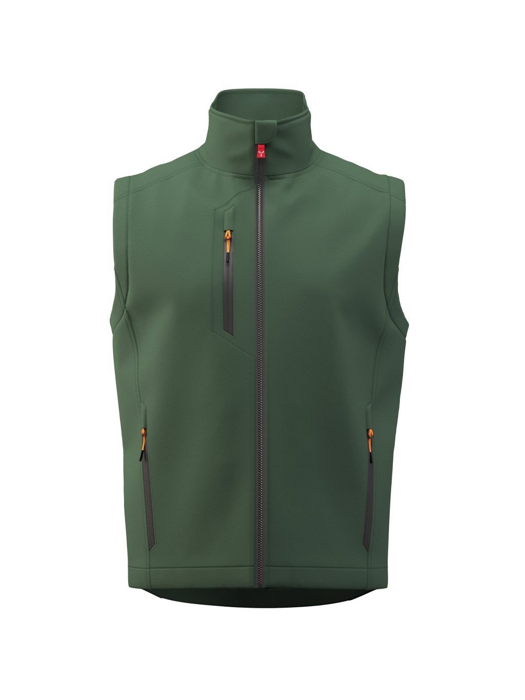 Pánska vesta softshell s výplňou, zapínanie na SBS zips s kovovým poloautomatickým bežcom „semi-auto lock“ a ťahačom s logom. Flísová vnútorná strana goliera s bočnými prvkami. Reflexné pásy na spodku zadnej časti. Dve bočné vrecká so zipsom, jedno náprsné vrecko je s potiahnutým zipsom. Fluorescenčné ťahače. Jedno vnútorné lemované vrecko so zatváraním na suchý zips. Zadná strana je nastaviteľná za pomoci zarážky s logom.