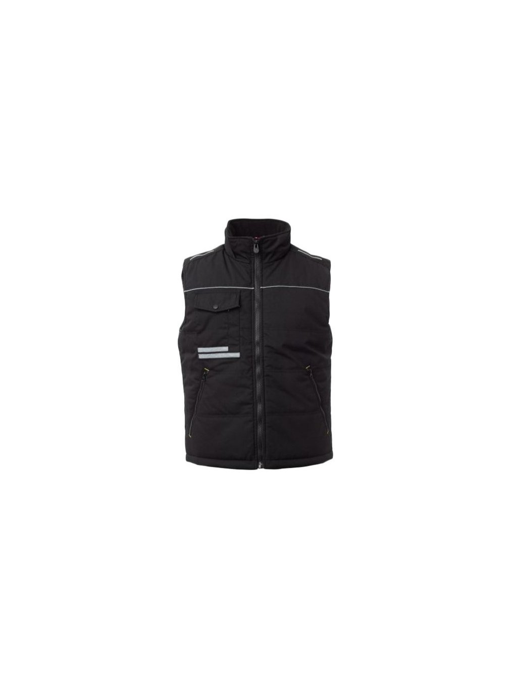 Unisex pracovná zimná vesta s 8 mm zipsom s kovovým bežcom, tvarovaný chrbát, dve priestranné vonkajšie vrecká so zipsom, priestranné viacfunkčné náprsné vrecko, vrecko na smartfón a reflexné pásiky, krúžok na prichytenie služobnej menovky. Vnútro: prešívaná výplň so silnou podšívkou, flísová vnútorná strana goliera, jedno vrecko.